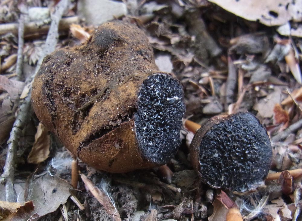 Gleba: typisch schwarz gelatinös, mit weißen, eher dünnwandigen Kammern