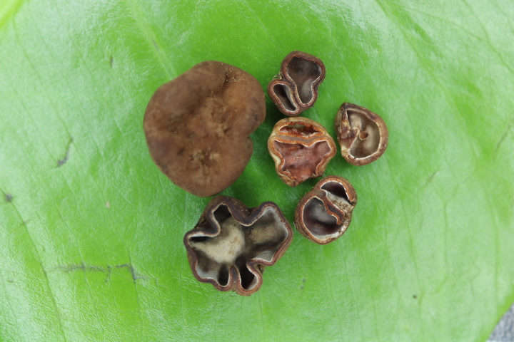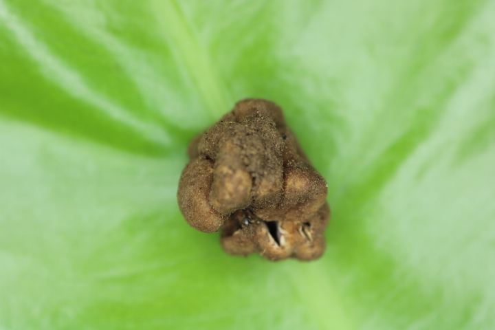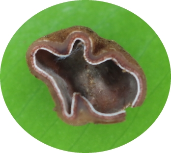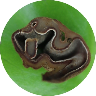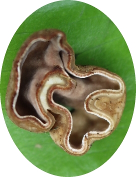 Gleba mit wenig Windungen, ähnlich wie Genea. Könnte das Hydnotrya confusa sein? Sporengröße 20-25µm - 30-37µm.