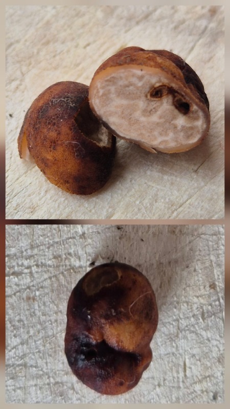 Für eine zuverlässige Bestimmung ist meist eine Sicht auf die Innenseite (Gleba) nötig. Bitte schneidet eine gefunde Hypogäenart sauber durch und fotografiert sie bei Tageslicht.