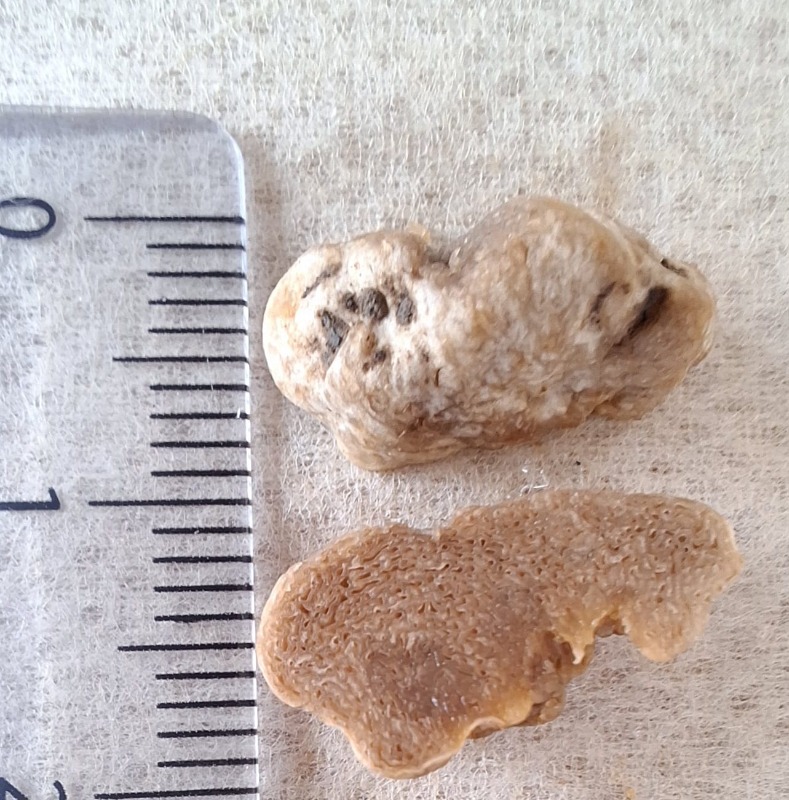 Für eine zuverlässige Bestimmung ist meist eine Sicht auf die Innenseite (Gleba) nötig. Bitte schneidet eine gefunde Hypogäenart sauber durch und fotografiert sie bei Tageslicht.