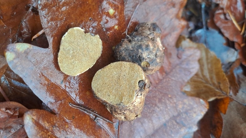 Für eine zuverlässige Bestimmung ist meist eine Sicht auf die Innenseite (Gleba) nötig. Bitte schneidet eine gefunde Hypogäenart sauber durch und fotografiert sie bei Tageslicht.