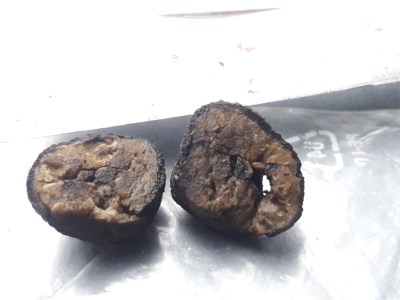 Diesmal ist der Fund etwas besser erhalten. An der Peridie kann man deutlich Warzen erkennen und der Fruchtkörper