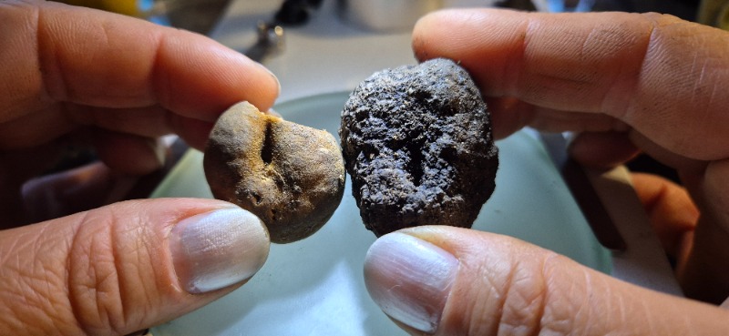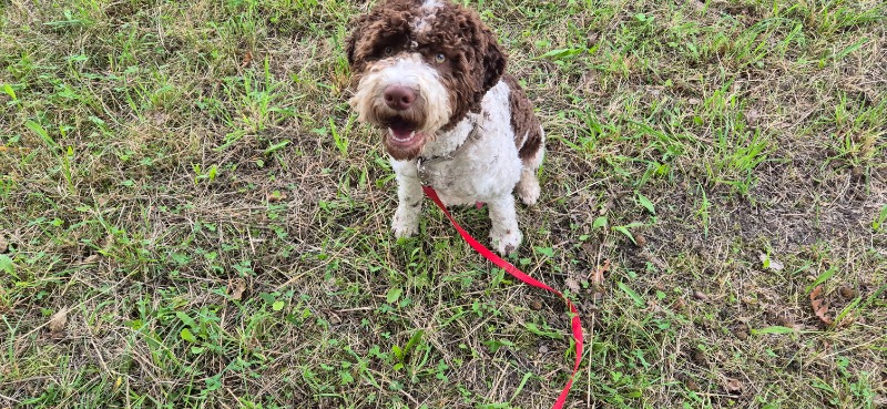 Wir, Dora in Ruhestand und Paco Lagotto 10 Monate, sind neu hier. Am Montag nach dem Lehrgang war Paco schon aktiv und hat T. Aestivum gefunden. In den letzten Tagen hat er verschiedene Fruchtkörper an die Oberfläche befördert, die ich nicht bestimmen kann. Grund ist, dass ich mich nicht auskenne und noch kein Mikroskop habe oder Paco hat sie gefressen.